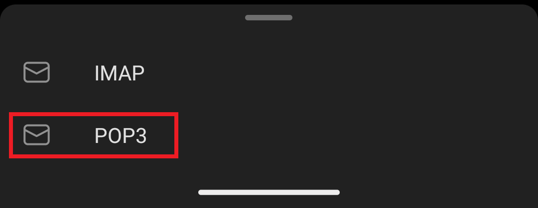 画面下部に「IMAP」「POP3」の選択ボタンが出るので、