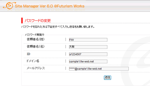 | 依頼者名(姓) | :パスワード再発行を行われる方の姓 |