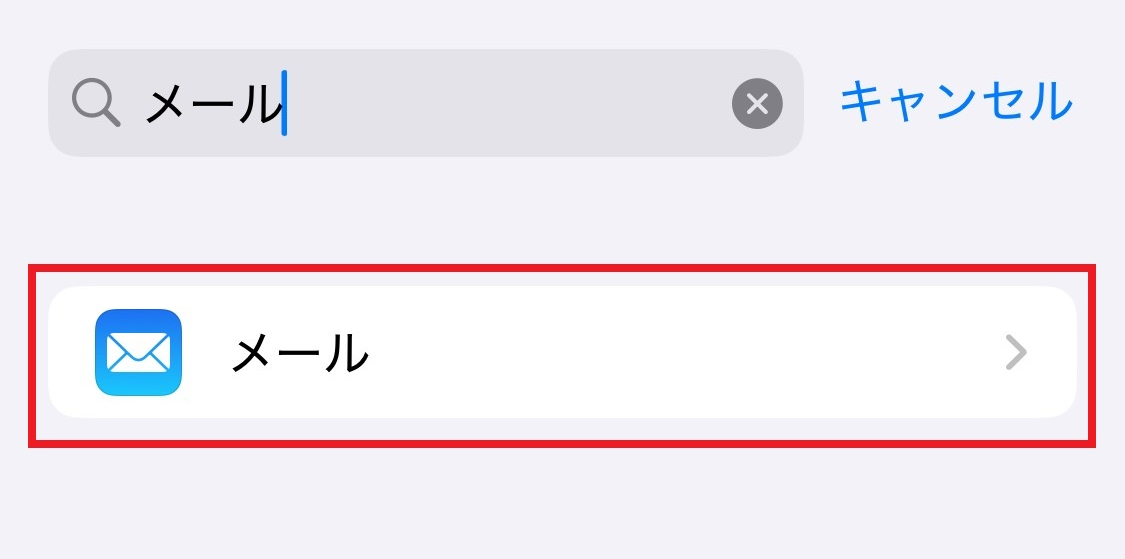 上部の検索欄にて「メール」と検索し、出てきた「メール」のボタンをクリックします。