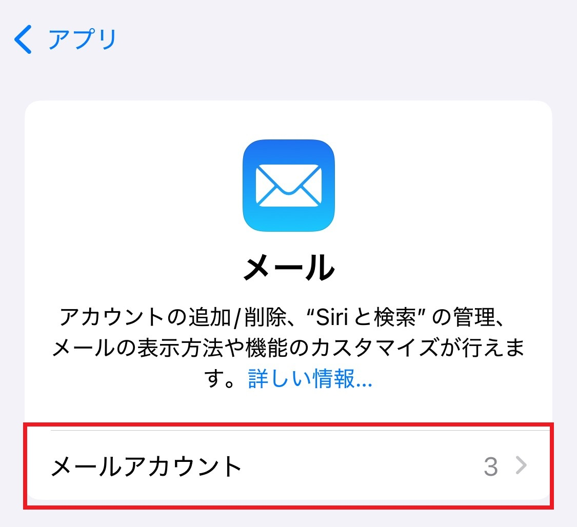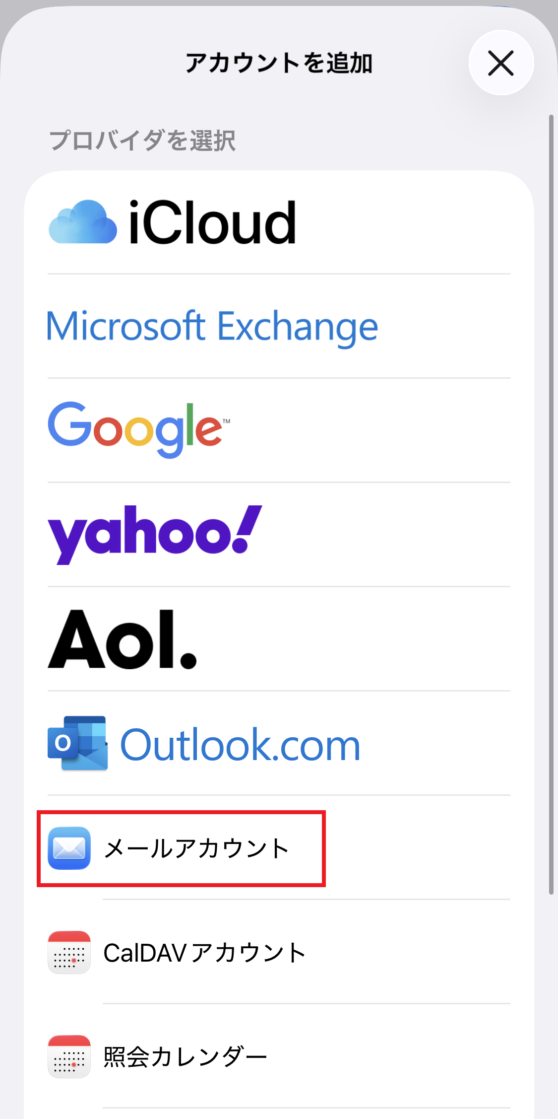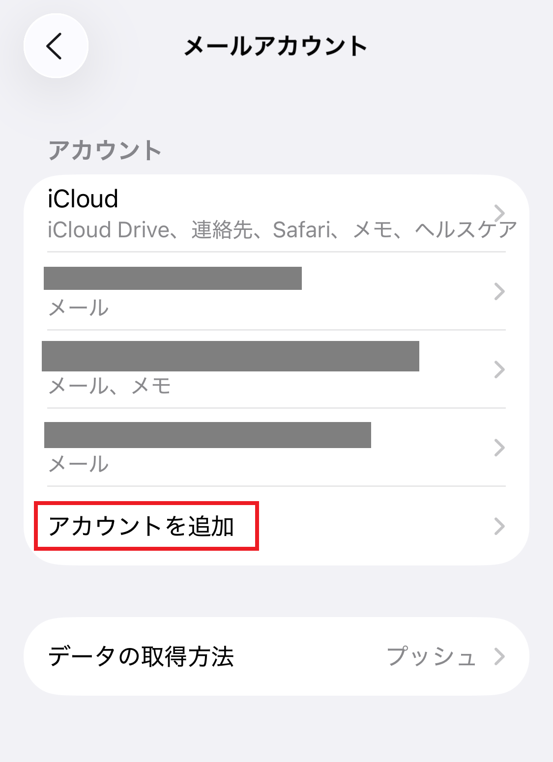 iPhoneの設定画面には、今設定した新しいメールアカウントが表示されています。